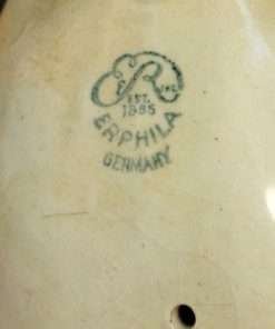 He is marked “Erphila Germany” on the bottom. It was a mark used by the giftware importer, “Ebeling and Reuss” of Philadelphia between 1886 and the 1950’s. The mark is a combination of the letters E & R (Ebeling and Reuss), and the first letters of Philadelphia.