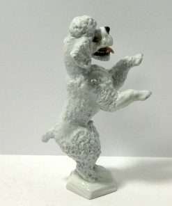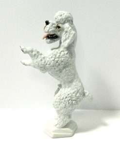 This delightful, Rosenthal porcelain Poodle almost looks to be smiling as he “dances” upright. He stands a full 8 1/4″ tall x 3 1/4″ long x 2 1/4″ wide.