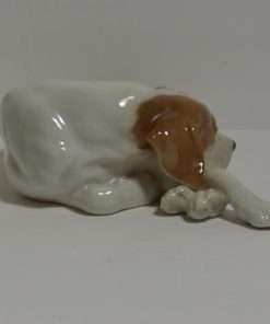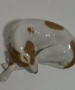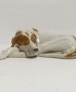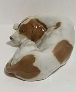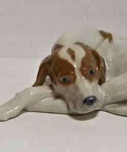 This wonderful Pointer dog figurine is curled up and looking alert, but also quite comfortable.