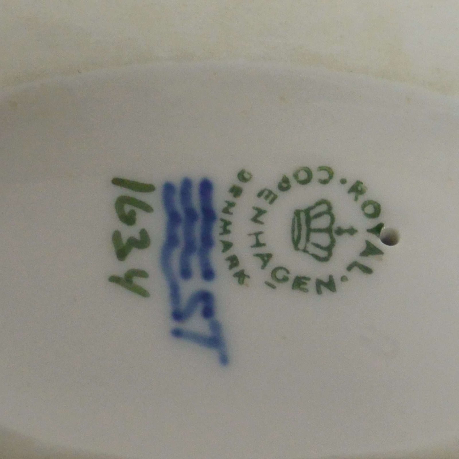Measuring 2 1/2″ tall x 7″ long x 5 3/4″ wide, she is in excellent condition, and fully marked on her underside with both the Royal Copenhagen crown mark, and model # 1634.