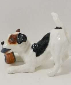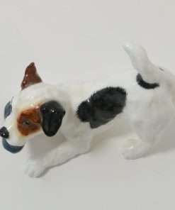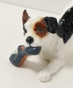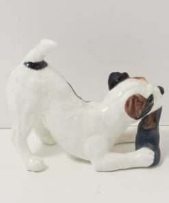 This wonderful pup has a perfect high gloss finish, and bears the green Royal Doulton backstamp and the mold # H.N. 2654. He is in excellent condition and stands 3 1/2″ tall x 4″ long x 2″ wide.