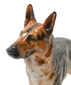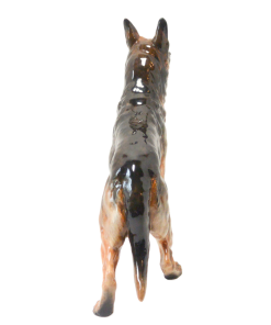 This very realistic porcelain German Shepherd dog figurine is the largest canine model done by Royal Doulton, measuring a full 7 1/2 ” tall x 9 1/2″ long x 3 1/2″ wide.