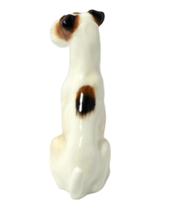 The Fox Terrier pup measures 2 1/2″ tall x 2 1/2″ long x 3/4″ wide. The Jack Russell Terrier pup measures 2 1/4″ tall x 2 ” long x 1 1/2″ wide.