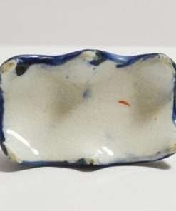 They are both resting on a cobalt blue base, with a wavy edge. You can see a remaining small section of the gilt line that once embellished the front of the base.