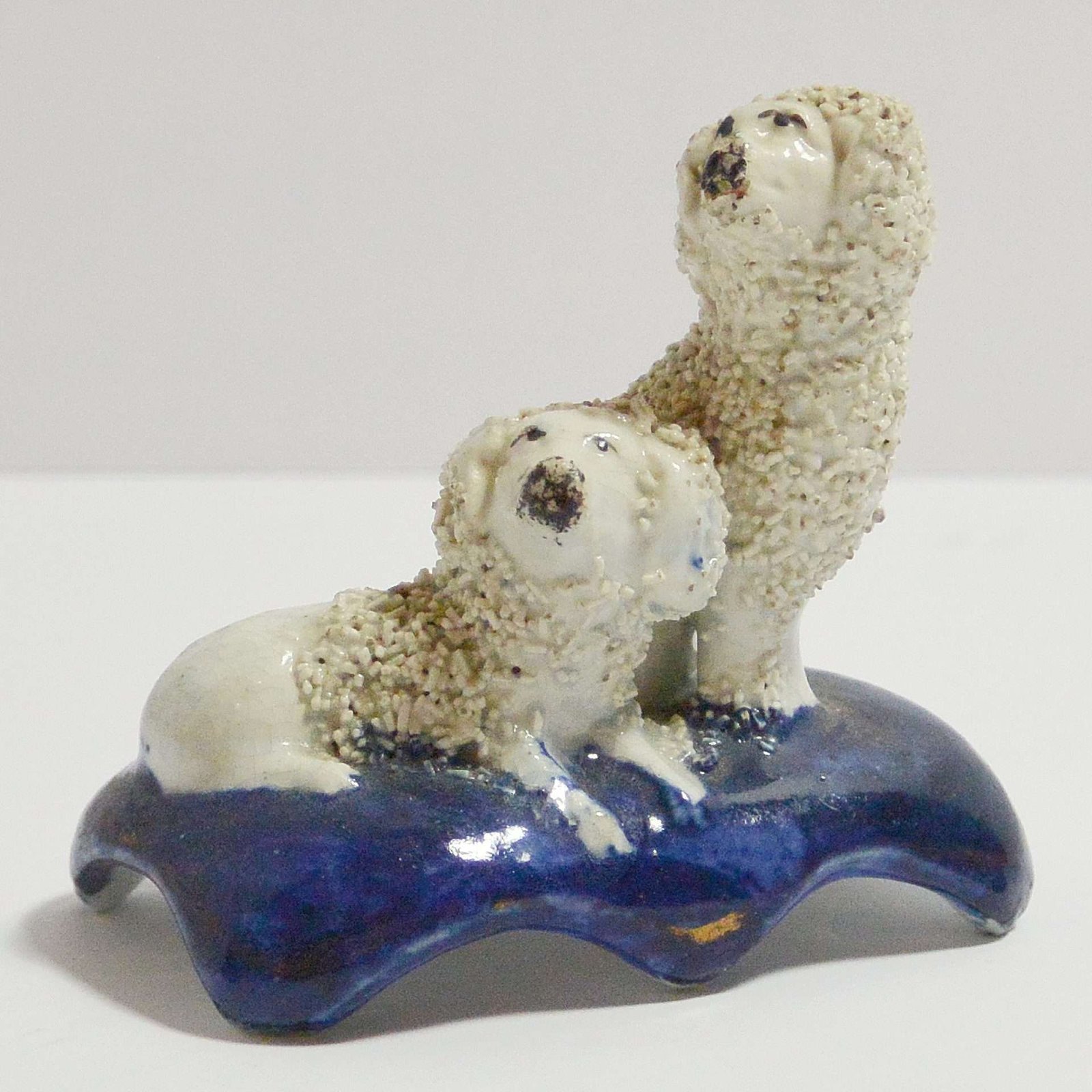 Made in England c. 1860 – 1880, they are decorated “in the round” (to front and back), and have shredded clay to simulate a Poodle’s