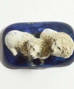 Together, they measure 2 3/4″ tall x 2 1/2″ long x 1 1/2″ wide. They are in excellent condition with some mild crazing on the underside of the base that you would expect on a figurine of this age.