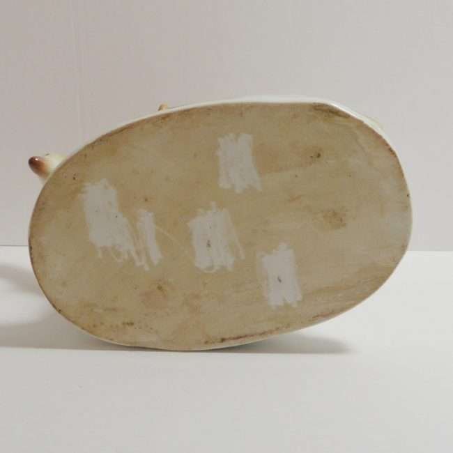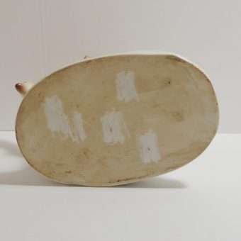 Measuring a full 9″ tall x 8 1/2″ long x 5 1/2″ wide, it is in mint condition, with all of it colors still bright, and it is painted completely around all sides. The thin metallic gold line that encircles the base, is also still perfect.