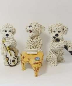 Combine all three vintage spaghetti poodle figurines, and you have quite a lively band.