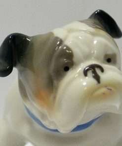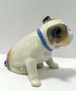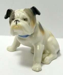 This porcelain Bulldog is full of character. Designed by Metzler & Ortloff of Thuringia, Germany (1875 – 1990), this sweet guy was made between 1972 and 1976. He sits 2 1/2″ tall x 2 3/4″ wide x 3 3/4″ long, and he is in excellent condition. The look on his face, that “Oh really, so what else is new?” is classic Bulldog and something that anyone who has had the pleasure of a Bulldog’s company knows well. He would fit in well in any Bulldog collection, and he would certainly make a wonderful gift to any Bulldog enthusiast.