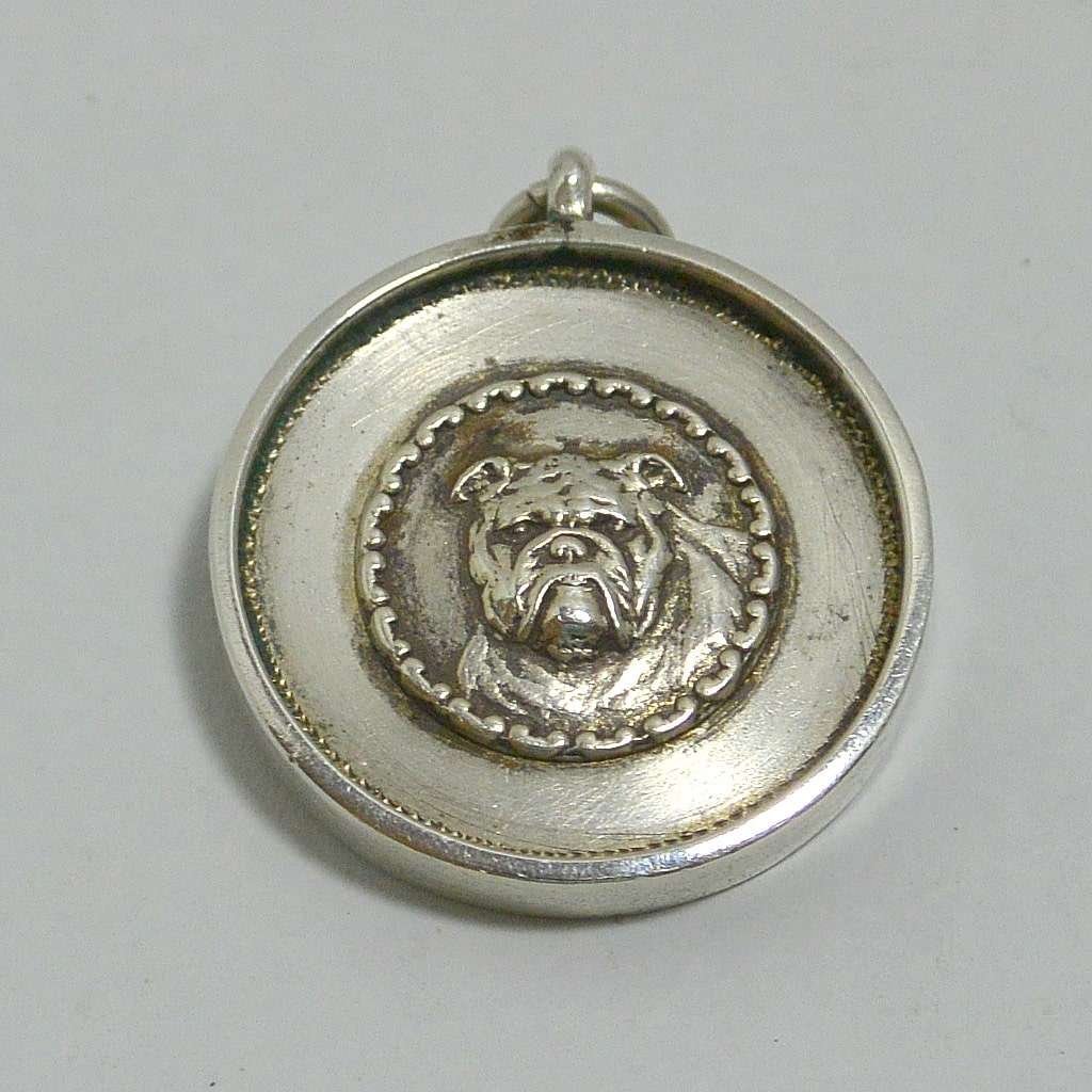 This antique, sterling silver, watch fob was mostly likely, originally owned by a Bulldog enthusiast. It was manufactured in Birmingham, England, c.1927, by Uttley & Company.