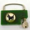 This carved Bakelite Scottish Terrier Brooch is a real standout! It is a deep cherry red with a black painted collar and nose and a black and orange glass eye. The carving on this dog beautifully depicts his fur lines, which are finer on his face and broader on his body. He is in excellent condition and would certainly make a terrific addition to any collection. He stands, posed for fun at 2″ tall x 2 1/2″ long.