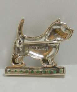 This sterling silver Cairn Terrier pin is absolutely exquisite. The highly detailed fur lines and the intently focused look on this pup’s face makes it look very much like its “flesh and fur” counterpart.