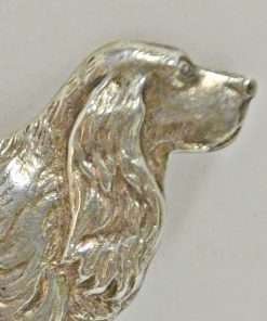 This sterling silver Spaniel dog pin is both simple and sweet. The extraordinary detailing of the dog’s flowing fur and gorgeous ear makes it a truly exquisite piece to wear both informally on a shirt or sweater, or even as a more formal piece on a dress or dressy blouse.