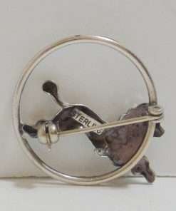 Far from the bedazzled and frou frou look of many Poodle pins, this solid sterling silver pin features a Standard Poodle showing off one of their least mentioned personalities…that of an elegant athlete.