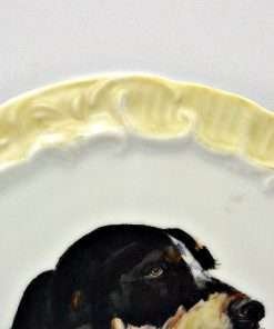 This exquisite, hand-painted, decorative dish was made in the late 1800’s. It features a highly detailed, and very realistic portrait of an English Pointer dog. It is a signed work of art (Atchison.)