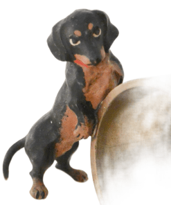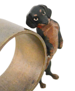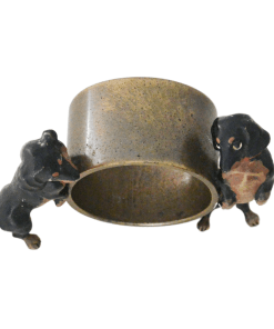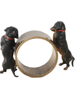 Designed by Franz Bergman between the late 1900’s – the early 20th century, it is unique in that it features two dachshunds, instead of one. For those who collect Austrian bronze Dachshunds, this charming napkin ring would be a unique and rare addition to your collection.