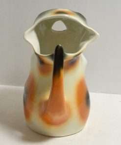 Measuring 6″ tall x 3 1/2″ long x 3 1/2″ wide, it can either be considered a small milk pitcher, or a large creamer.