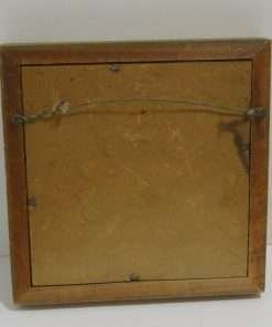 Classic, beautiful and absolutely flawless! This wonderful needlepoint shows a handsome Wire Haired Fox Terrier dog standing, alert and ready to go. Done in wool yarn, on a black background, which sets off his soft beige and caramel coloring. That needlepoint is matted with a dark green felt, covered in glass, and framed in a painted gold wooden frame. The needlepoint shows 3 14″ in diameter. The entire piece, including the frame is 7″ x 7″ square. The entire piece is in excellent condition and ready-to-hang. It would look fabulous in a study or an office, hung on the wall as part of a gallery, or on an easel frame on a book shelf.