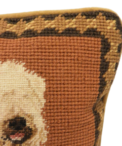 The needlework is beautifully done, with all the natural colors of this breed, against a warm brown background.