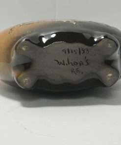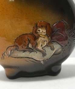 This unique, pillow vase was created by Rick Wisecarver in 1983. Unlike most of his pottery pieces that feature Native American Indians, this wonderful vase, while done in his signature brown and tan glaze, features a hand painted Cavalier King Charles Spaniel .