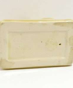 This Rookwood Pottery Terrier pup is just as sweet as his butterscotch glaze. With one paw up and his head held high and alert, he is 5″ tall x 3 1/2″ long by 2 1/4″ wide (which includes the rectangular base he is sitting on.)