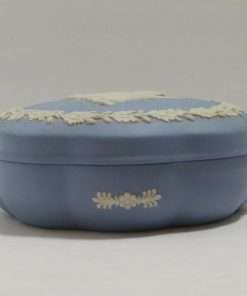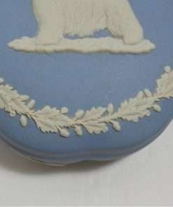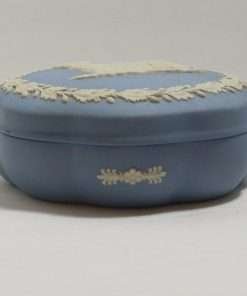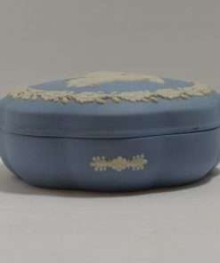 This Wedgwood trinket dish measures 2″ tall x 5″ in diameter. It is in mint condition.