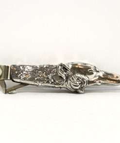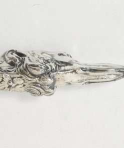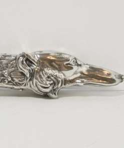 This exquisite, silverplate cigar cutter is the perfect example of Art Nouveau design, with its intricate pattern of vines and leaves, combined with the flowing fur lines of the Borzoi.