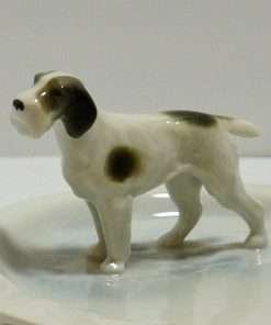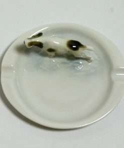 This beautiful porcelain ashtray just begs to be used as a trinket dish. It was designed and made by Metzler & Ortloff of Germany, and it carries all the charm this designer typically adds to all their canine figurines. In this case, the dog is a Fox Terrier, who is standing in the bowl of the ashtray. The entire piece is done in a creamy, white porcelain. The dog, however, looks to be standing in a puddle of water, which the artist created by adding a touch of pale blue, and a few ripples in the porcelain. It is a wonderful, whimsical, touch that really makes this piece special.