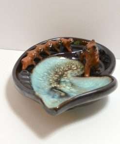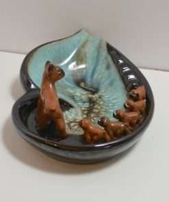 If you are a Boxer dog lover, you will think of dozens of ways to use this 50’s vintage ashtray. This collectible piece is definitely more about fun, than function. The design is an “amoeba” shape, with colors that move from a deep chocolate brown base to an amazing swirl of aqua and teal, with splashes of white and deep brown in the bowl of the tray. But the highlight of this wonderful piece is the parade of Boxers! The mother dog appears to be taking her five puppies on a single file stroll. Just look at how those puppies stay in line! The entire tray is 8 1/2″ long x 6″ wide, and it is in excellent condition. This is a wonderful collector’s piece, a gorgeous decorative piece, and a very special gift for any Boxer owner.