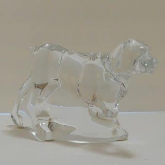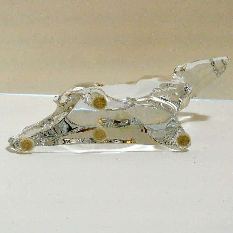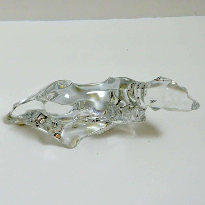 This elegant figurine was designed by B.Augst for Baccarat of France. He measures a full 4″ tall x 7″ long x 1 1/2″ wide, and he is in mint condition.