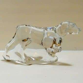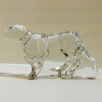This Baccarat, crystal Pointer dog captures both the active and amiable personality of this delightful breed. With his gaze focused forward, and one paw raised, he looks like he has spotted what he was looking for, and telling you where to look.