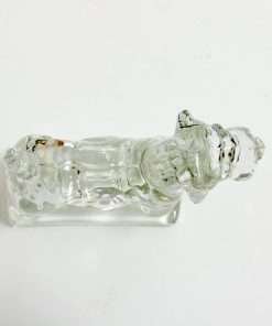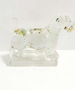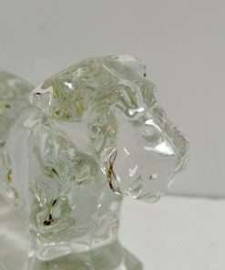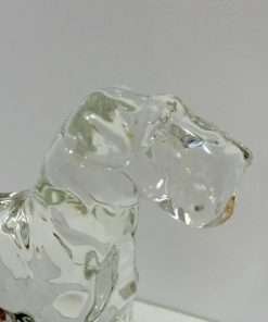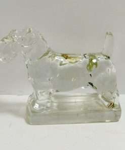 This elegant crystal glass Scottish Terrier was made by A.H. Heisey between 1941 and 1946. He stands 3 3/4″ tall x 5 1/4″ long x 2 1/4″ wide, and he is in excellent condition.