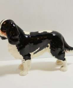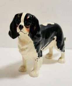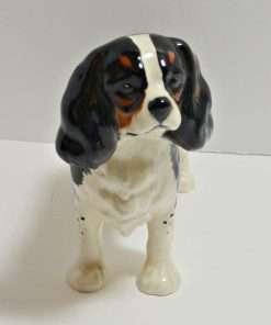 This beautiful, porcelain figurine shows off the Cavalier King Charles Spaniel to perfection. She stands a full 5″ tall x 7 1/2″ long x 2 1/4″ wide, and she is in excellent condition.