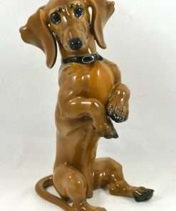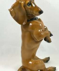 Extraordinary in every way, this gorgeous, Dachshund dog stands a full 9 1/2″ tall x 5 1/2″ long x 3 1/2″ wide. Magnificent detailing, as you would see on all Rosenthal figurines, is especially evident on this amazing dog.