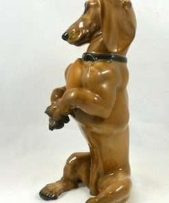 Extraordinary in every way, this gorgeous, Dachshund dog stands a full 9 1/2″ tall x 5 1/2″ long x 3 1/2″ wide. Magnificent detailing, as you would see on all Rosenthal figurines, is especially evident on this amazing dog. From the whisker spots on his muzzle to each realistic toenail, the gentle folds in his ears and the bulges and rolls of his muscles, he is in excellent condition, and a true masterpiece! Created by the renowned German artist/sculptor, Professor Theodor Karner (1884-1966 Munich, Germany), it is impressed on the underside “Prof. Karner” together with the model # 1129. This wonderful figurine would make an extraordinary addition to any Rosenthal canine collection and the perfect gift and focal, decorative piece for any Dachshund owner’s home.