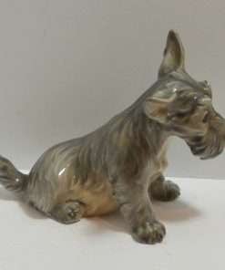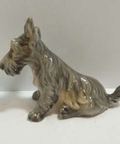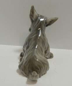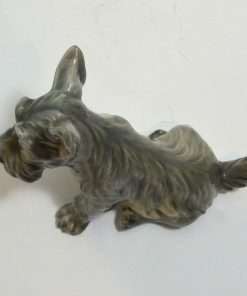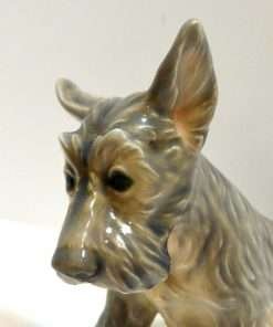 This Scottish Terrier pup by Dahl Jensen is absolutely exquisite! As with all Dahl Jensen figurines, his expression is so gentle and sweet, you can’t help but want to hold him! He sits a full 6″ tall x 8″ long x 3 3/4″ wide and looks at you with such soulful eyes, that you can almost feel your heart melting. He is clearly marked #1078 and he is in excellent condition. The white spots you may see in the pictures are just “tricks” of lighting and the camera…he is flawless. Please note that the pictures make him look more “brown” in color than he actually is. His true coloring is more of a soft grayish brown. If you are a collector of Dahl Jensen figurines, this beautiful Scottish Terrier is the perfect addition to your collection. He appears on page 37 of “Dahl-Jensen Porcelain Figurines 1897-1985 by Caroline and Nick Pope. As a gift, or a decorative reminder of your favorite breed, he is priceless!
