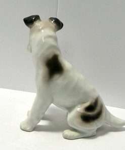 This seated Fox Terrier dog figurine was created at the Fritz Pffeffer Porcelain factory between 1900 and 1934.