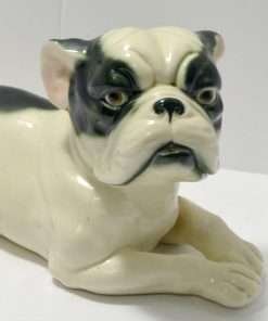 This is an old, hand-painted, porcelain Boston Terrier figurine. Boston Terrier enthusiasts know that many are quite dapper in appearance, and sometimes they look like grouchy old men. Either way, we just love them.