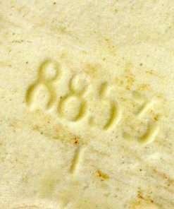Measuring 5″ tall x 9″ long x 4 1/2″ wide, he is in excellent condition. He is not marked, but he does have numbers incised on his underside.