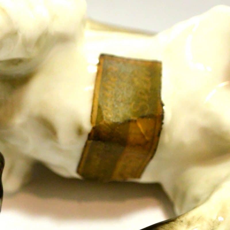 This beautiful Springer Spaniel was designed by Karl Tutter for the Porcelain Factories Company, Selb Bavaria, as part of the “Tierwelt” (Wildlife) series between 1955 – 1968. Both the form and the colouring of this dog are exquisite. He appears to be stopped in mid-stride with his front paw raised and gazing outward, as though something important has suddenly caught his attention. The fur lines on his legs and tail are so beautifully rendered, they almost appear to be flowing. He stands 4 1/4″ tall x 5 3/4″ long x 2 1/4″ wide, and he is in excellent condition, with the marker’s mark under his left front paw. He also still has his original Hutschenreuther label. Anyone who has ever owned a Springer will just fall in love with this enchanting boy, who is so realistically made, you can almost feel the “spring” in his step.