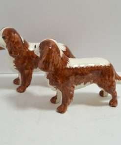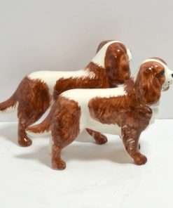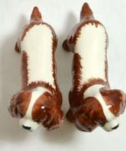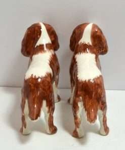 This beautiful, matched pair of Cavalier King Charles Spaniels are the perfect gift for any owner of this precious breed. Handpainted to show off their classic “Blenneim” coloring, they are done in a rich chestnut and pearly white.