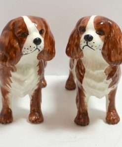 This beautiful, matched pair of Cavalier King Charles Spaniels are the perfect gift for any owner of this precious breed. Handpainted to show off their classic “Blenneim” coloring, they are done in a rich chestnut and pearly white.