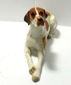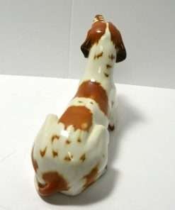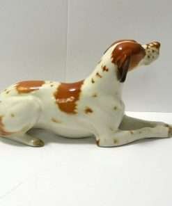 This striking caramel & white, Pointer dog was hand-made and hand-painted in the Lomonosov porcelain factory in St. Petersburg. Founded in 1744, by Peter the Great’s daughter, Empress Elizabeth, Lomonosov porcelain is one of the oldest porcelain manufacturers in Europe. The quality, demanded by the Imperial Romanov family, can still be found two and a half centuries later.