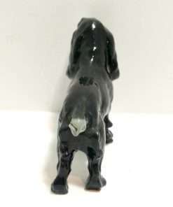 This beautiful Cocker Spaniel figurine by Metzler & Ortloff has such wonderfully flowing fur lines, they almost appear to be made of liquid. The dog’s jet black body is exquisitely highlighted with touches of pale grey.