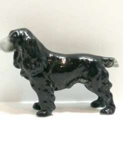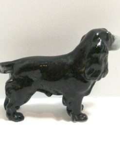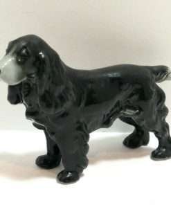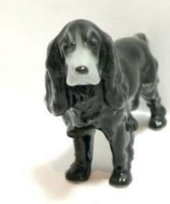 This beautiful Cocker Spaniel figurine by Metzler & Ortloff has such wonderfully flowing fur lines, they almost appear to be made of liquid. The dog’s jet black body is exquisitely highlighted with touches of pale grey. She is in excellent condition and stands 2 3/4″ tall x 4″ long x 1″ wide. As a collector’s piece, she is one of the “hard-to-find” Metzler & Ortloff dogs. If you are a Cocker Spaniel enthusiast, especially black Cocker Spaniels, you know how hard it is to capture their dark, elegant beauty in a portrait or in a figurine, yet this one is done masterfully. She is a wonderful collector’s piece, as well as a unique and special gift for any Cocker-lover.