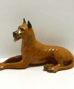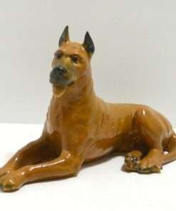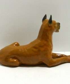 Of all the wonderful dog figurines done by Mortens Studio, this black Great Dane figurine is one of its’ most popular. This fabulous dog is reclining, with what almost looks like a grin on his face, and his tongue hanging out.