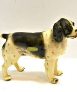 This wonderful Springer Spaniel dog was designed and produced by Mortens Studio. Seated at 4 1/2″ tall x 6″ long x 2 ” wide, he has fabulous detailing, and elegant black and white coloring (including the “freckles”.)