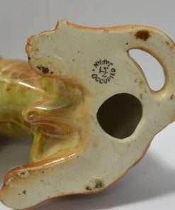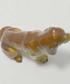 This wonderful dog figurine, made in “Occupied Japan” really looks like the hound dog next door. With his slightly slumped posture and the calm, but wise expression on his face, you can tell that he has run through the woods more than a few times. He is one of the many items made in Japan, specifically for export between 1945 – 1952.