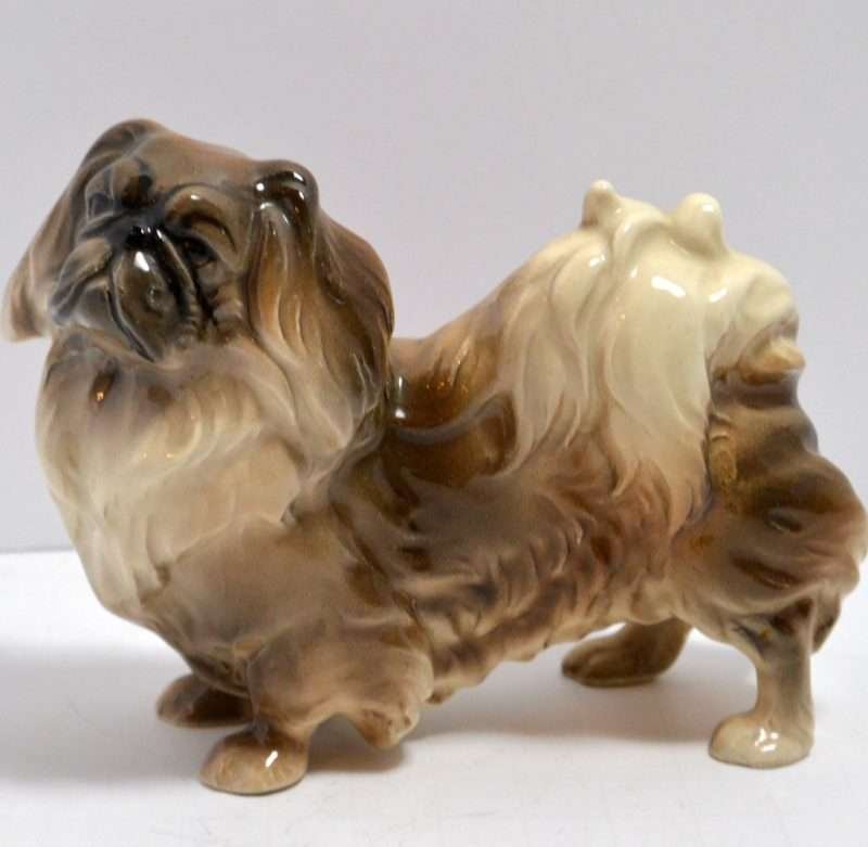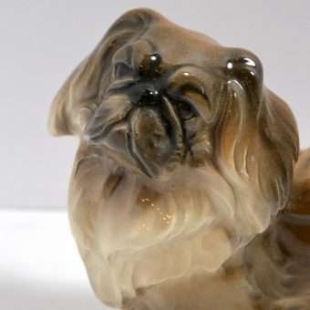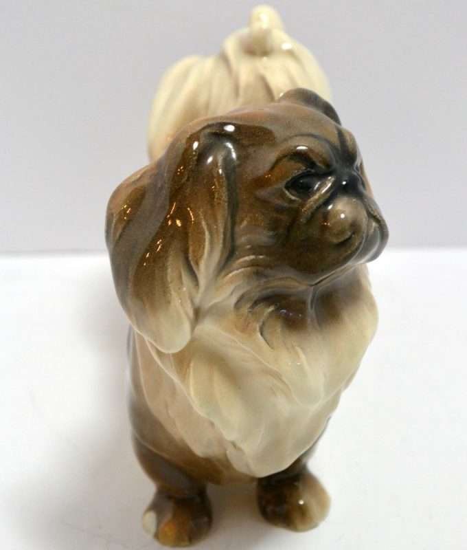 It’s no surprise that this elegant Pekingese dog was bred to be the cherished companion of the imperial family of China. This porcelain figurine was made in Austria and stands 4 1/2″ tall x 5 1/4″ long x 2 1/2″ wide.