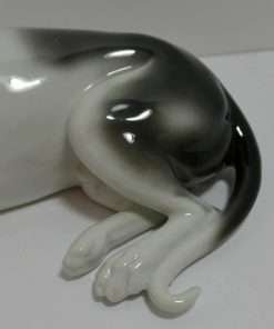 This gorgeous, porcelain figurine of a Rat Terrier shows off all the wonderful distinguishing characteristics of this amazing dog breed. Reclining at a full 10 1/2″ long x 5 1/2″ tall x 4″ wide, he is in excellent condition.